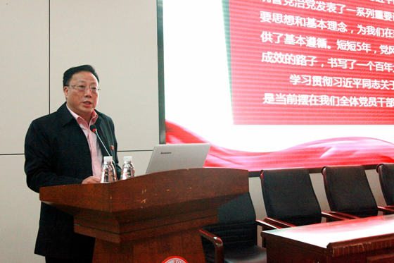 在专题讲座中,陈子华副书记从加强和规范党内政治生活、严抓八项规定精神落实、发挥巡视利剑作用、扎紧制度的笼子、保持遏制腐败高压态势等五个方面,回顾了十八大以来全面从严治党的“成绩单”。聚焦习近平总书记在十九大报告中强调的“全面从严治党永远在路上”,陈子华副书记介绍了十九大报告中对新时期党的建设提出的新要求,持之以恒正风肃纪,坚定不移惩治腐败;全面加强党风行风建设,坚决贯彻落实中央八项规定精神,要夺取反腐败斗争压倒性胜利;要坚持无禁区、全覆盖、零容忍,强化不敢腐的震慑,增强不想腐的自觉,健全党和国家监督体系。